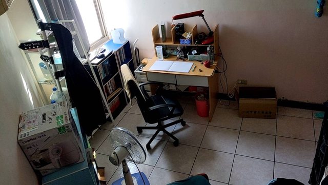 房間內設施如圖,冷氣是分離式的只是我沒拍到,惟白色架子、床墊等很多用具是我的,還