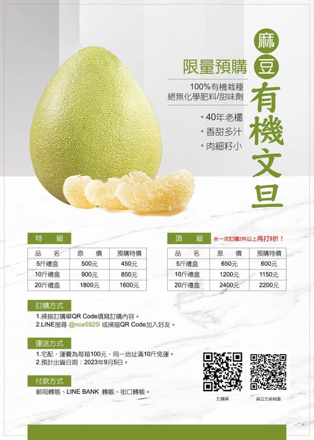 標題[廣宣] 麻豆老欉有機文旦預購開始囉!