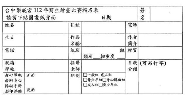 標題[資訊] 台中樂成宮112年寫生繪畫比賽