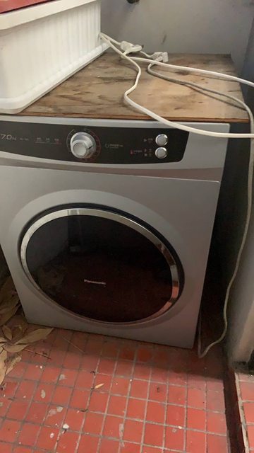物品說明:2018年購入,是連續下雨天衣服曬不乾的生活必備家電,烘乾仍有太陽的味道;因為搬家出清,照片中有木板放在乾衣機上頭,減少受日曬,其餘功能可上網參考