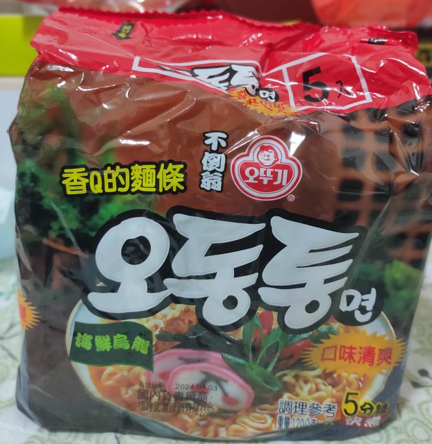 14. 不倒翁海鮮烏龍麵,一袋售100元,有效期限2024/4/3