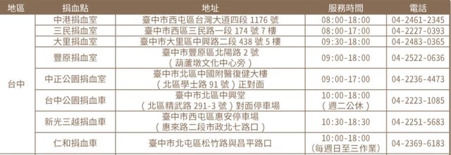 台中地區捐血地點: