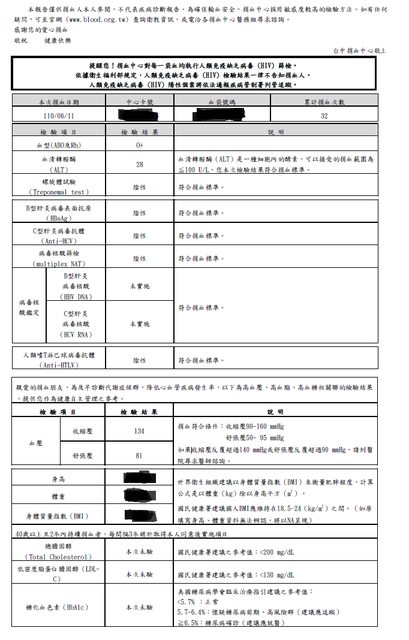 捐完後大概一週內會收到捐血檢驗報告
