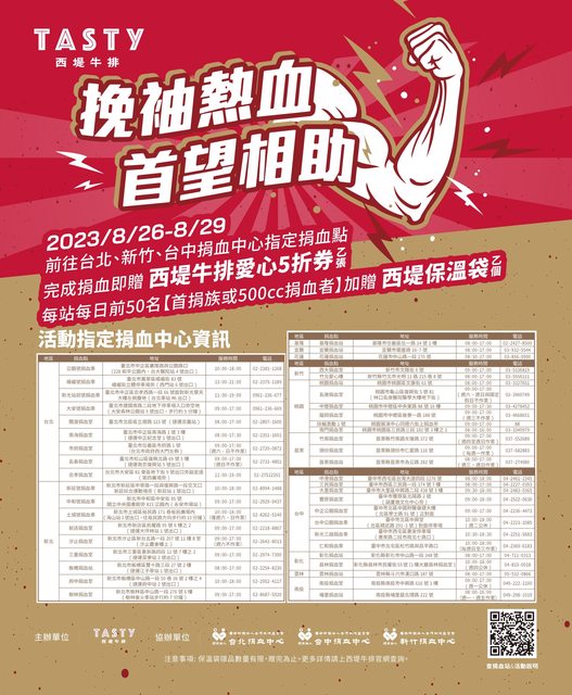 標題[資訊] 8/26-8/29 西堤牛排捐血活動