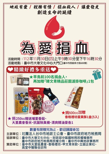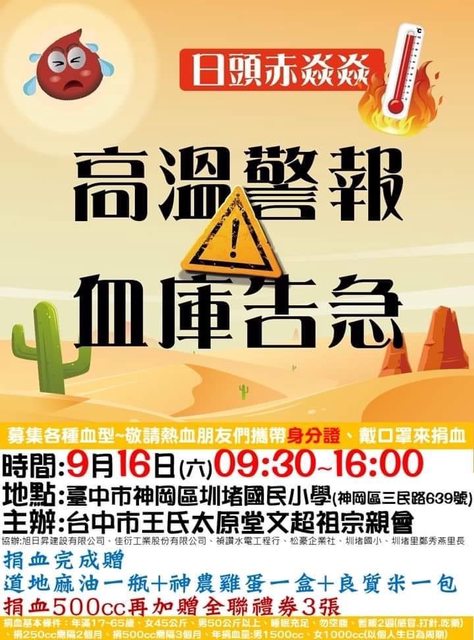 推 n10617 : AB型、A型、O型缺血中,請大家幫補充血庫 09/04 00:11