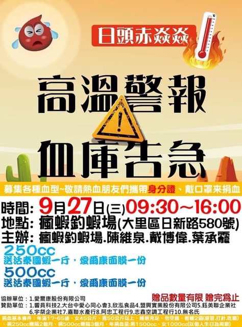 推 ed1125 : AB型、A型、O型缺血中,請大家幫補充血庫 09/04 08:15