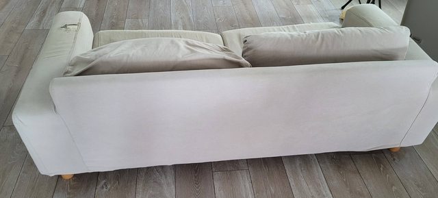 物品說明:10+年的muji2.5人座羽毛沙發,也被貓各種蹂躪10+年,如圖,有另一棕色沙發