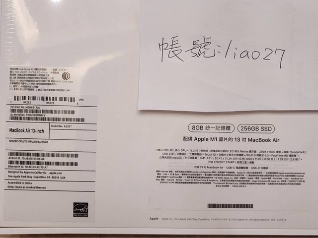 標題[出售] 全新 MacBook Air 13吋 M1 256G 8G