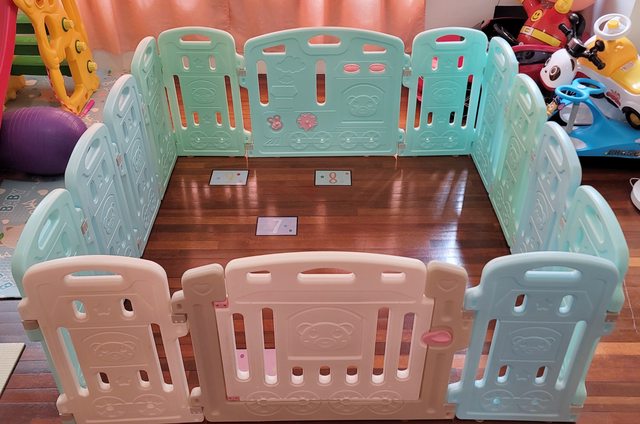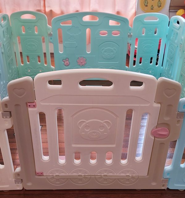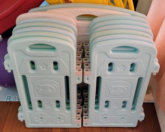 兒童遊戲圍欄12+2(門片&遊戲片),顏色是馬卡龍藍+綠
