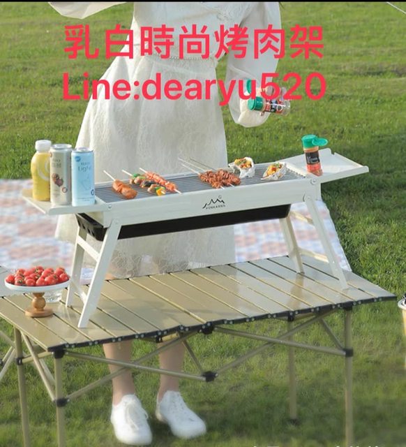 時尚乳白色中型烤肉架,附物料架,提袋,每個348。