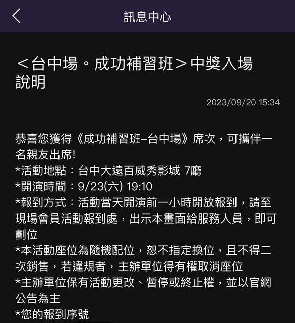 標題[贈送] 9/23 19:10大遠百威秀成功補習班特映
