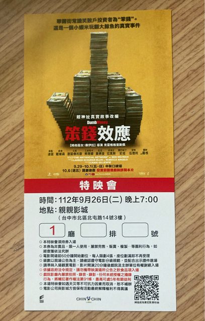 物品名稱:笨錢效應特映1張