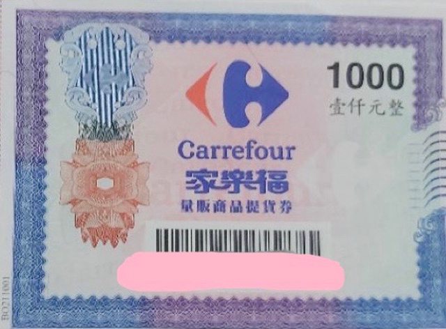 名 稱:家樂福禮券 面額1000元x15