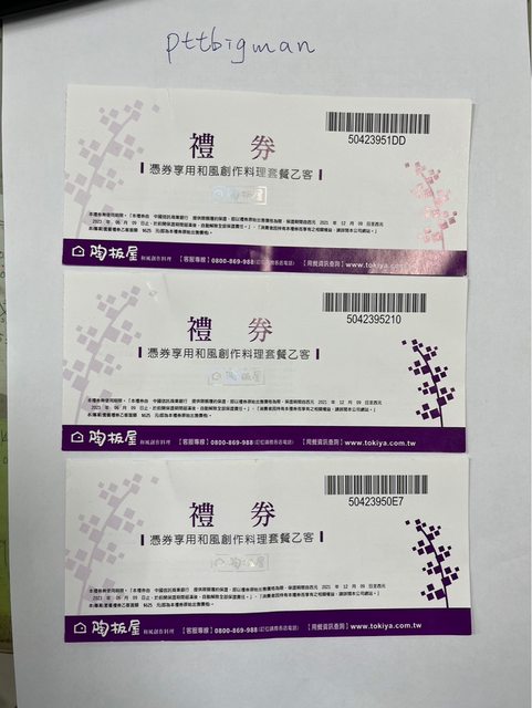 交易品項:陶板屋套餐禮卷 3張