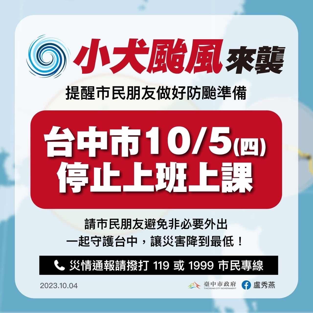 locdan : 以上次那個標準,今天白天就該放假了 10/04 18:28