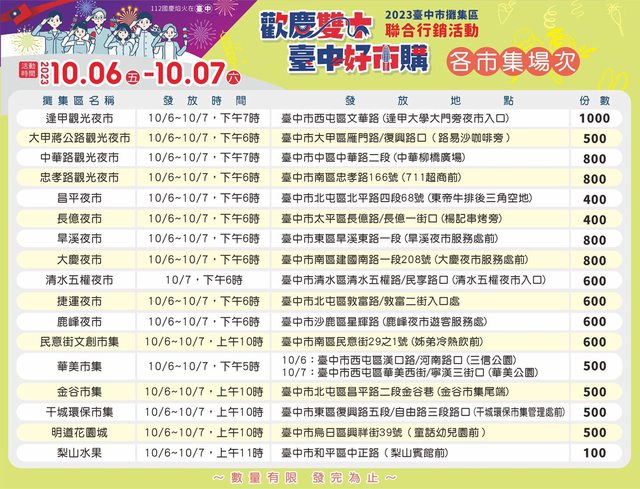 活動時間:10/6、10/7,實際發放時間依經發局和各攤集區粉絲團公布為主