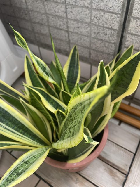 物品名稱:窗孔龜背芋、虎尾蘭、不知名植栽一盆