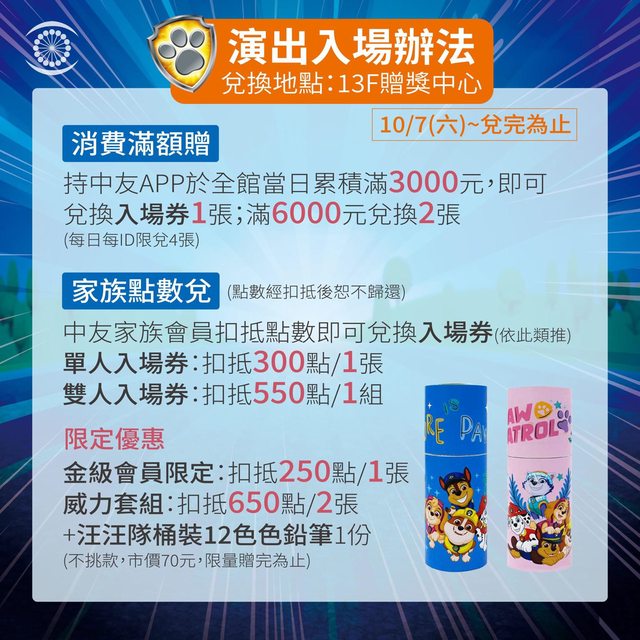 標題[商業] 中友百貨汪汪隊兒童劇場入場券