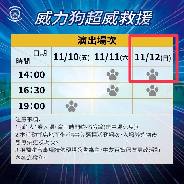 交易品項:中友百貨汪汪隊兒童劇場單人入場券1張