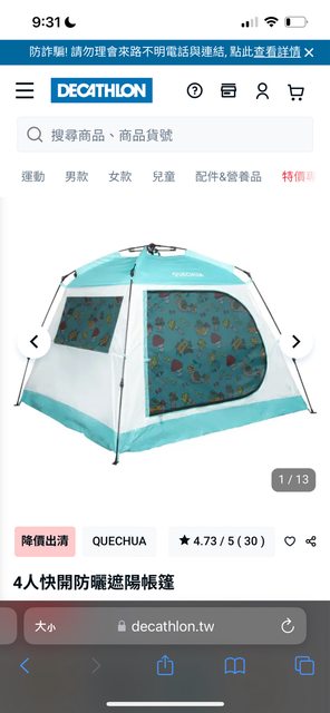 物品B/價格 迪卡儂 4人快開防曬遮陽帳篷