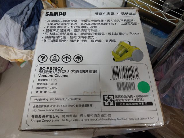 項目6:聲寶 免紙袋 吸力不減吸塵器