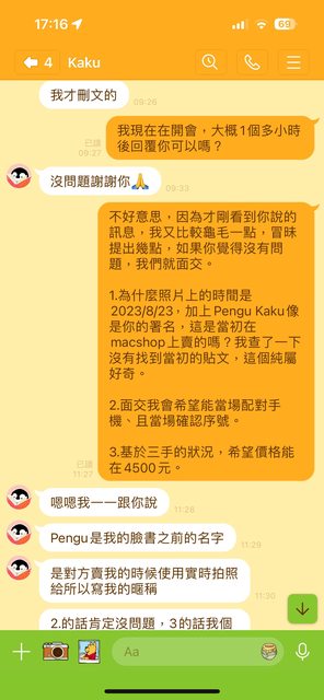 我跟公司同事吃飯吃的較晚,看到訊息後也立刻就回覆願意交易。