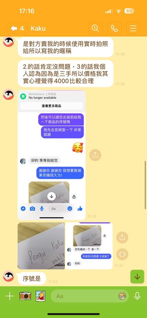 ch87yp已經跟其他人約交易了。後續疑似被封鎖不再回覆。