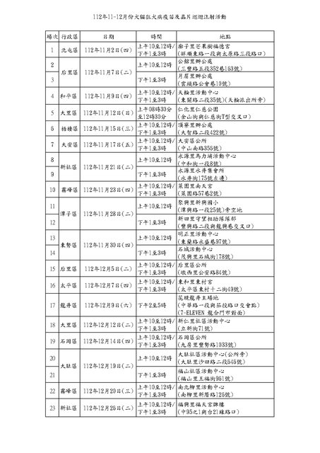 112年11、12月犬貓狂犬病疫苗及晶片巡迴注射活動