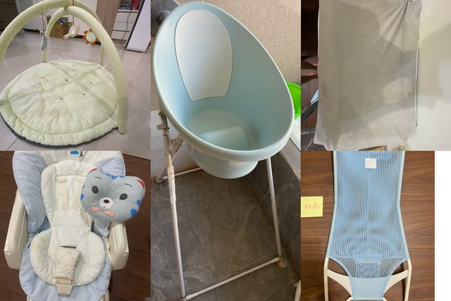 2021年購買,原價一萬多,功能一切正常,非常好用,有多首音樂跟白噪音,椅背跟高度也可調,墊子某幾處有奶汙(如圖),歡迎巧手媽來洗洗看;餐盤跟蚊帳全新未使用。