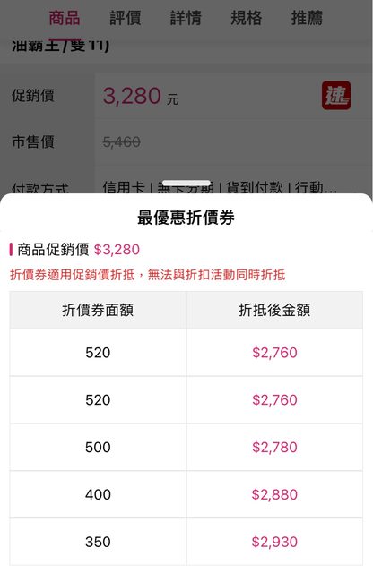 目前我這邊顯示折扣後2760/530ml=5.2元/ml