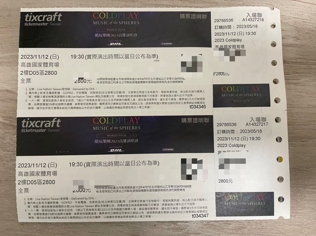 標題[交易] Coldplay 11/12(日) 演唱會門票讓票