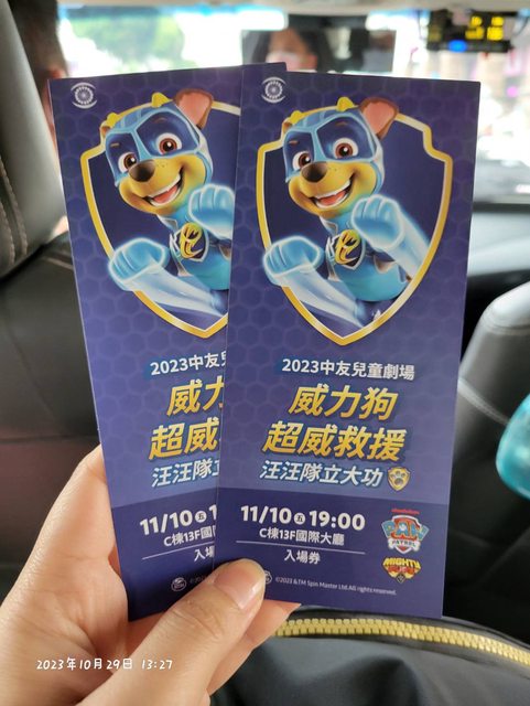 中友汪汪隊票券2張 場次11/10 19:00