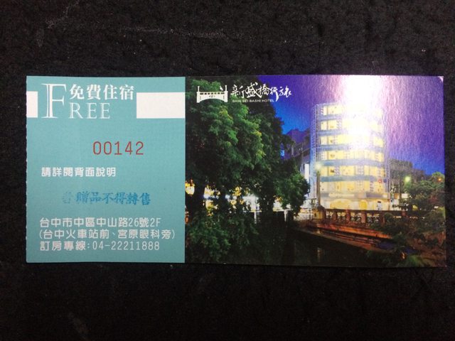 物品:台中新盛橋行旅 平日雙人房住宿券
