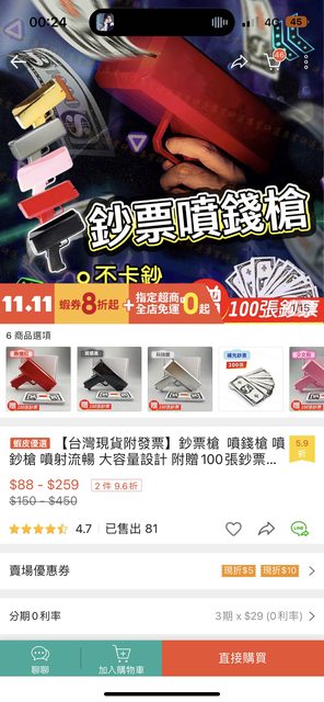 徵求項目:二手派對用噴錢槍(顏色不拘)又名噴錢槍