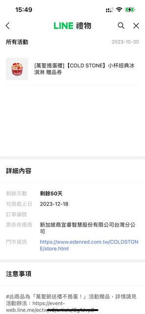 COLD STONE 小杯經典冰淇淋 共3張,單售90元,全收250元