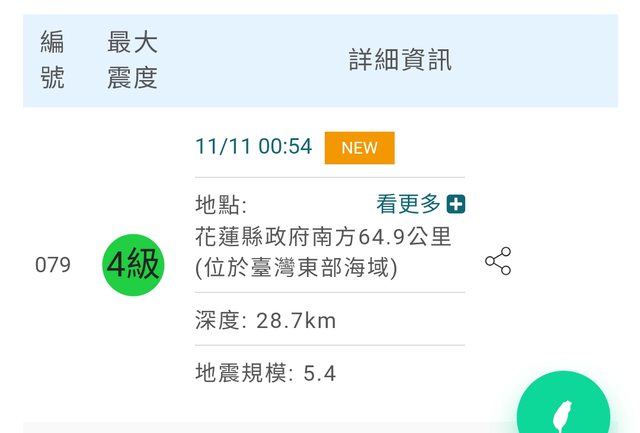 推 Qua3small : 咕狗說震央花蓮 4.8級 11/11 00:59