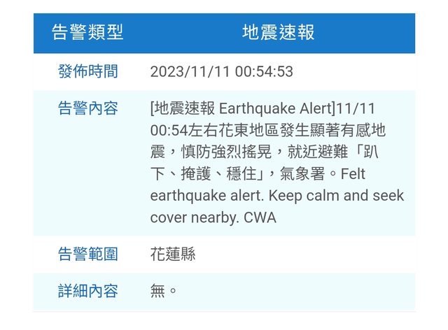 推 cuapple : 也覺得蠻大的,警報沒響比較安心(可能不是超大那 11/11 01:08