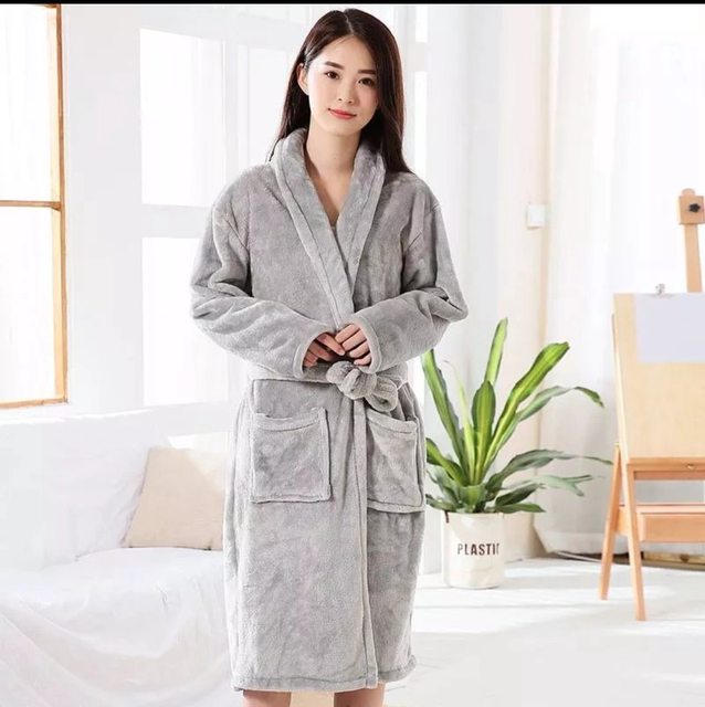 灰色浴袍,肩膀有脫線,50元,圖為賣場照