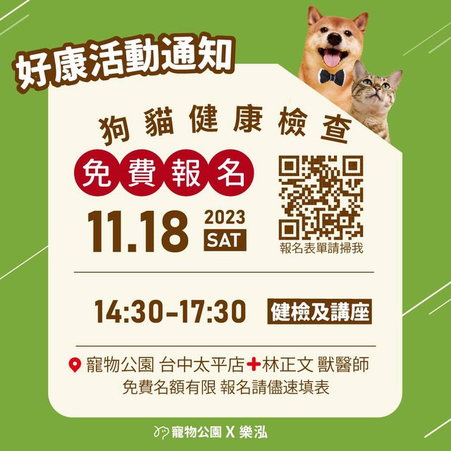 11月寵物公園 免費健檢開放報名