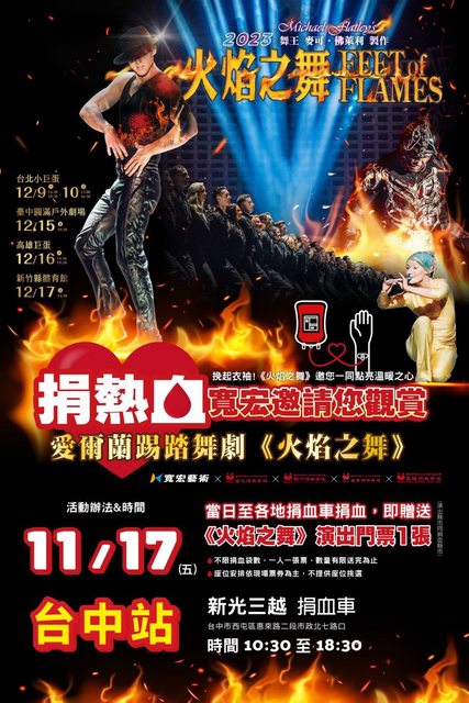 即贈送《火焰之舞》演出門票1張(演出縣市同捐血縣市)