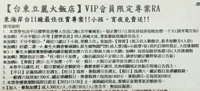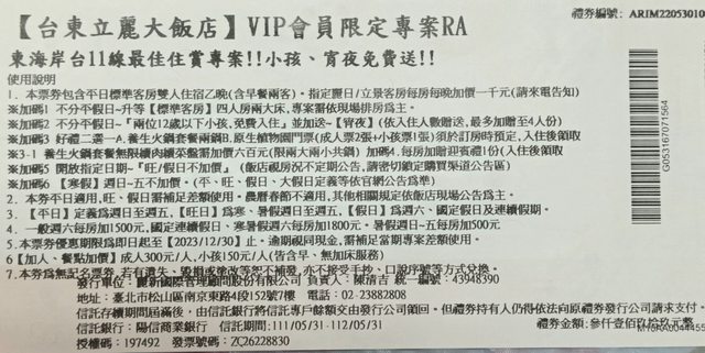 標題[交易] 台東立麗大飯店住宿劵