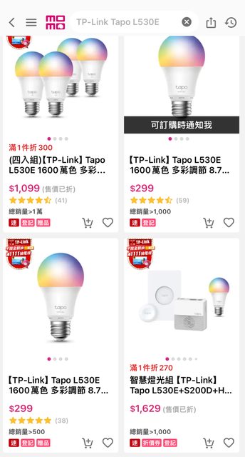 標題[交易] 南屯/全新tp-link智能燈泡L530E (2入組)
