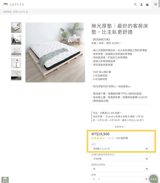 品名:【LOVEFU】無光厚墊(標準雙人)
