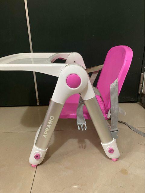 物品D: Apramo 粉色可折疊座椅 固定帶遺失 有附原廠提袋 然後左側邊安全帶斷裂 其餘如圖 原價2300元 出售500元 物品D實照