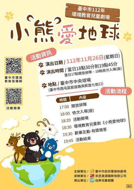 標題[資訊] 11/26環境教育兒童劇場-小熊愛地球