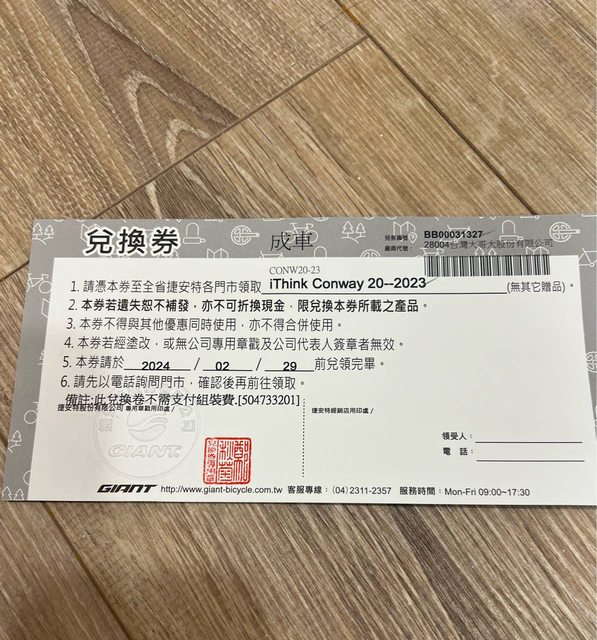 售 捷安特摺疊腳踏車 ithink conway 20 摸彩摸到的 提貨卷 可全台捷安特配合店家取貨 售4000元 自行選擇顏色
