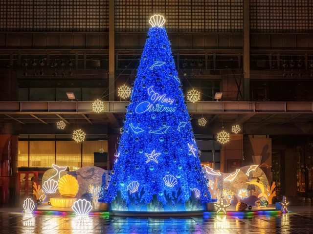 別有意境的海洋聖誕樹就在台中港新光三越!今年特別打造了10米高的靈動海豚、耀眼海