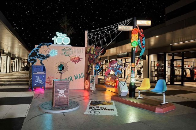 互動造景,化身郵票帶領大家翱翔於夢想王國,集結迪士尼、皮克斯、漫威電影宇宙、星