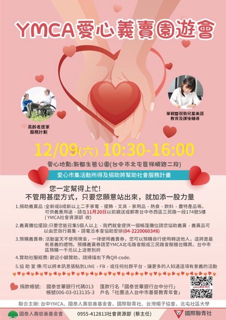 標題[資訊]12/9 台中YMCA愛心義賣園遊會