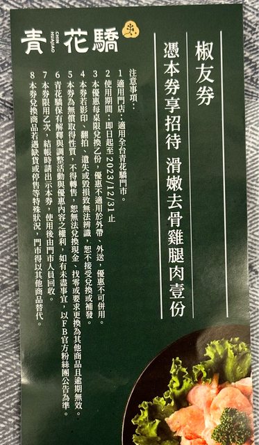 標題[贈送] 青花驕兌換券/森森燒肉、貍小路折扣